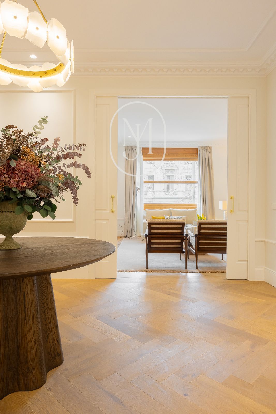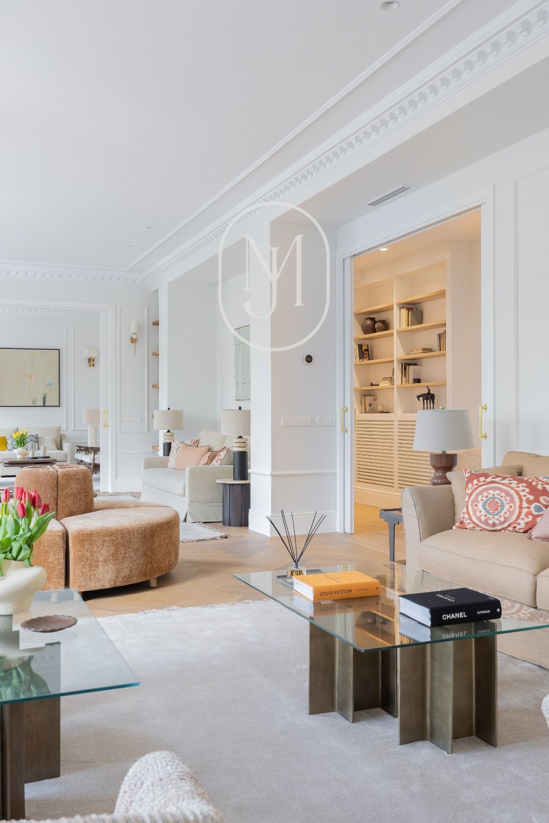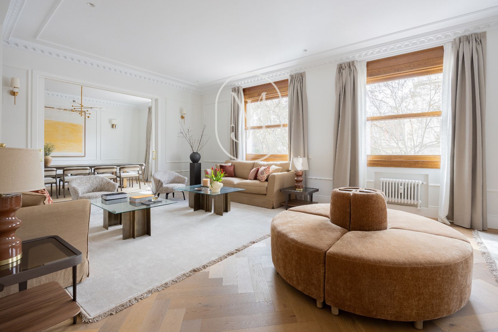 En una de las fincas más emblemáticas del Barrio de Salamanca, auténtico símbolo del estilo Art Déco en Madrid, se alza esta propiedad excepcional de 451 m². Situada en una primera planta con la prestancia y luz de un segundo piso, la vivienda exterior ofrece unas vistas privilegiadas y despejadas a la majestuosidad de la Embajada de Italia, integrando el paisaje urbano más exclusivo de Castellana en su diseño interior.