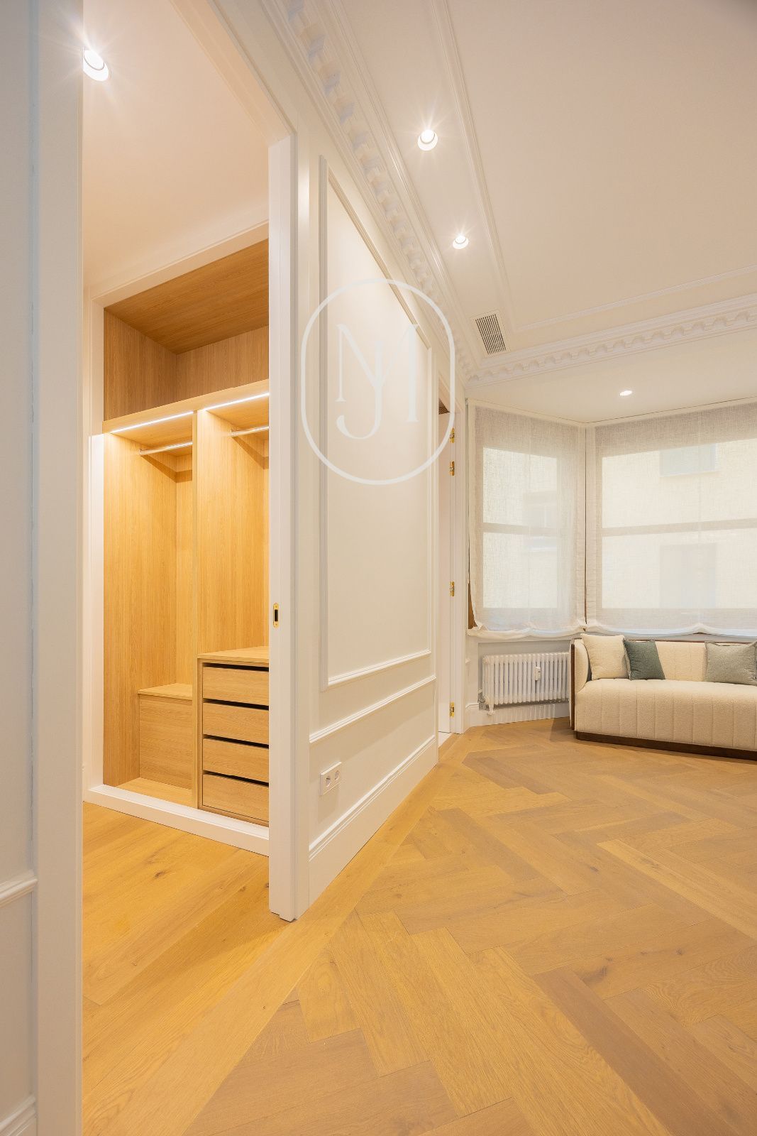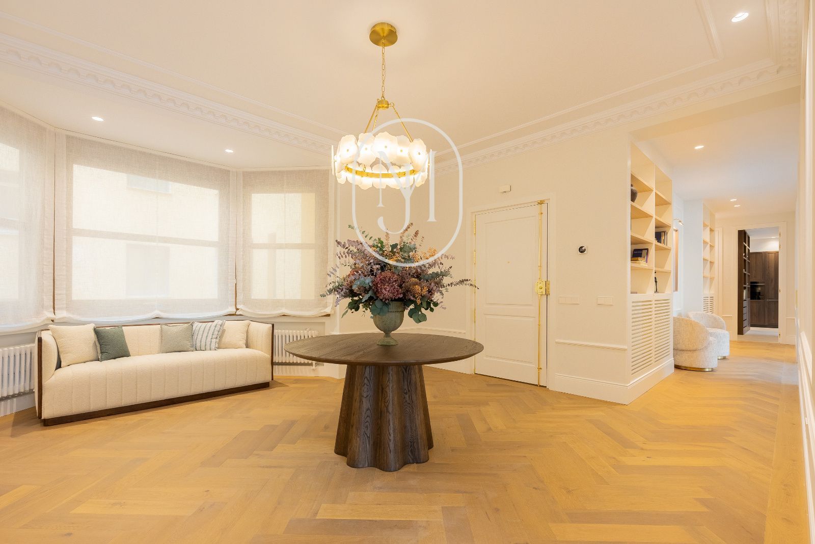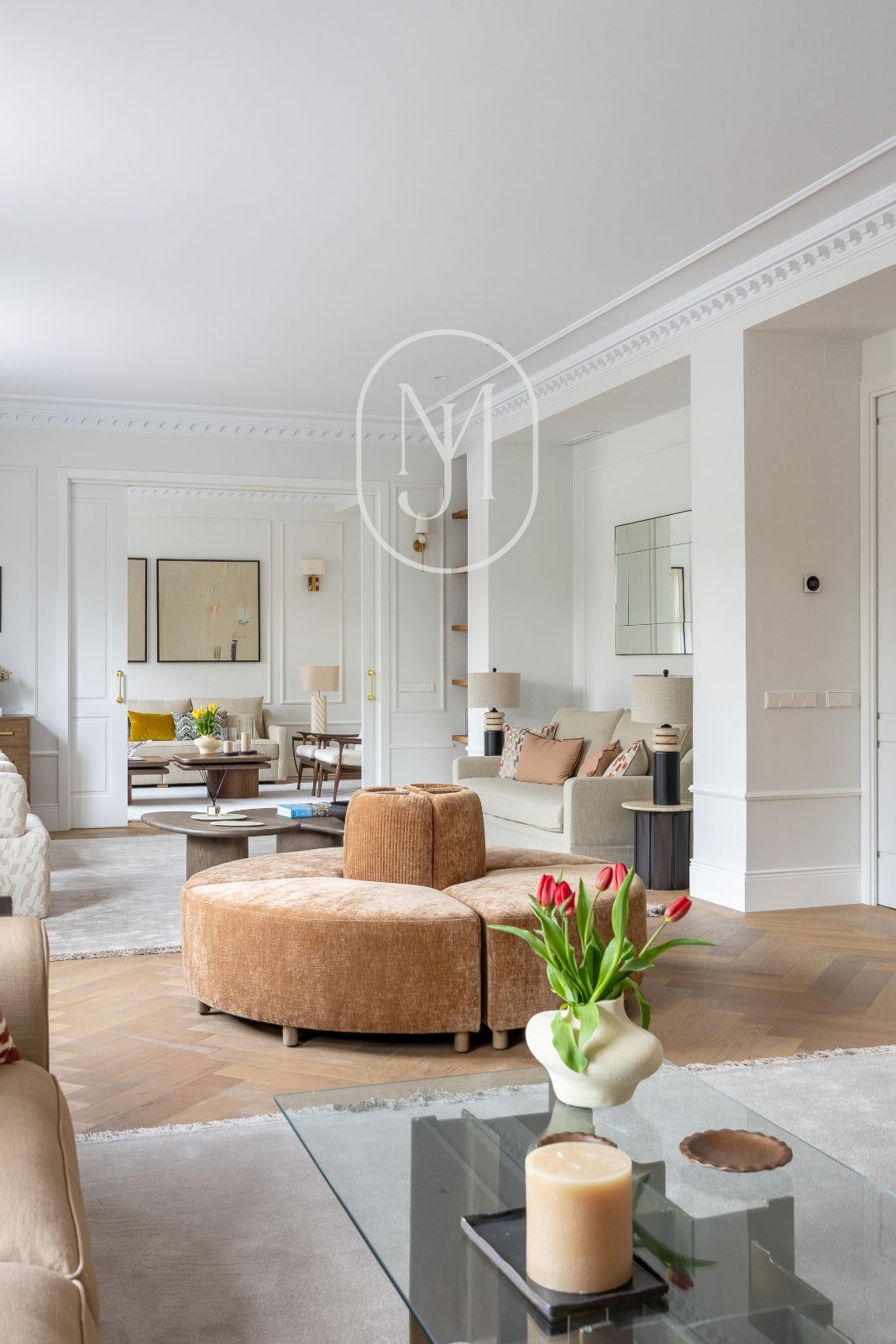 En una de las fincas más emblemáticas del Barrio de Salamanca, auténtico símbolo del estilo Art Déco en Madrid, se alza esta propiedad excepcional de 451 m². Situada en una primera planta con la prestancia y luz de un segundo piso, la vivienda exterior ofrece unas vistas privilegiadas y despejadas a la majestuosidad de la Embajada de Italia, integrando el paisaje urbano más exclusivo de Castellana en su diseño interior.