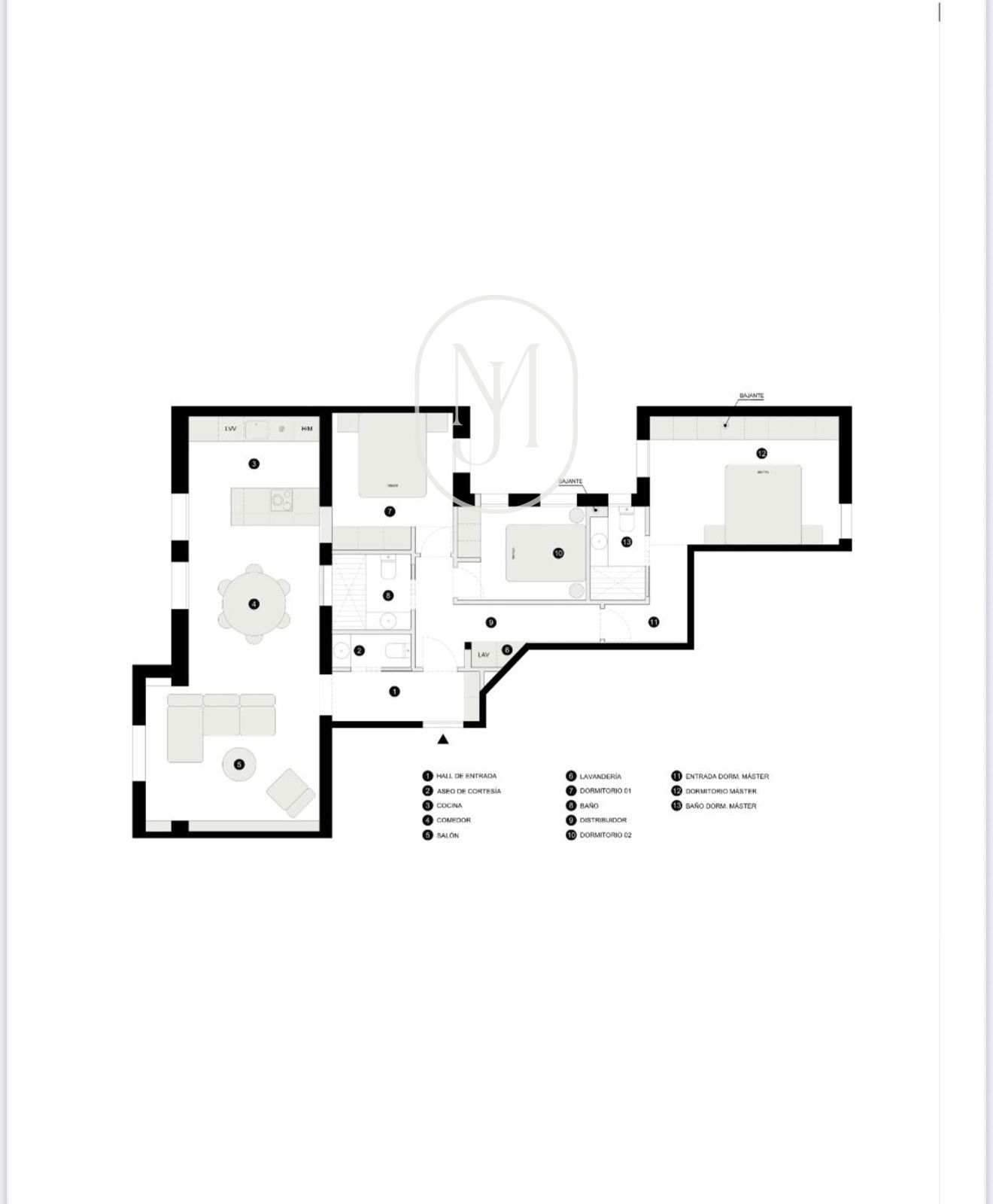 La sensación de amplitud es inmediata, gracias a sus impresionantes techos de 3 metros de altura, una característica que añade elegancia y permite el juego con volúmenes y luz. Al ser una quinta planta exterior, la luz natural es protagonista en cada rincón del hogar.